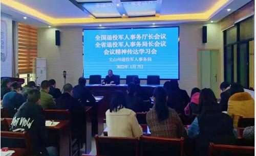 近日,文山州退役軍人事務(wù)局召開(kāi)會(huì )議傳達學(xué)習全國退役軍人事務(wù)廳(局)長(cháng)會(huì )議、全省退役軍人事務(wù)局長(cháng)會(huì )議精…